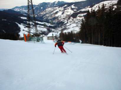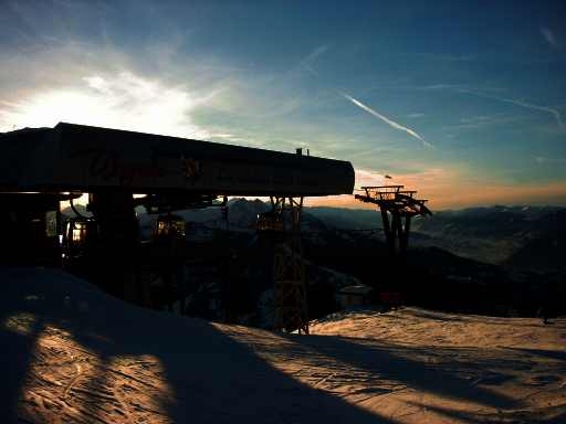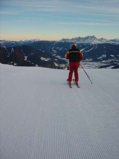 Am frühen Morgen wird kurzfristig auf die Piste am "roten 8er" gewechselt, da die Flying Mozart Bahn von Nacht- auf Tagbetrieb umgestellt wird.