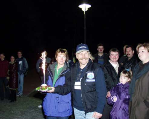 für Franz Frank: Mit Musik, Scheinwerfern und Geschenken wurde Dauerskifahr-Weltrekordler Franz Frank in seiner Heimat empfangen. Im Dorfgemeinschaftshaus Lorenzenberg war ein Buffet hergerichtet. Aßlings Bürgermeister Hans Kastenmüller und sein Stellvertreter Franz Hilger beglückwünschten den 50-Jährigen zu seiner Bestleistung. Über die Leinwand flimmerten Videobilder vom Rekord in Wagrain. Die rasende Talfahrt hatte Teamarzt Markus Heyenbrock mehrmals gefilmt. Zu sehen waren auf dem Video aber auch die Mitglieder des Teams, die Frank bei seinem erfolgreichen Rekord unterstützten.