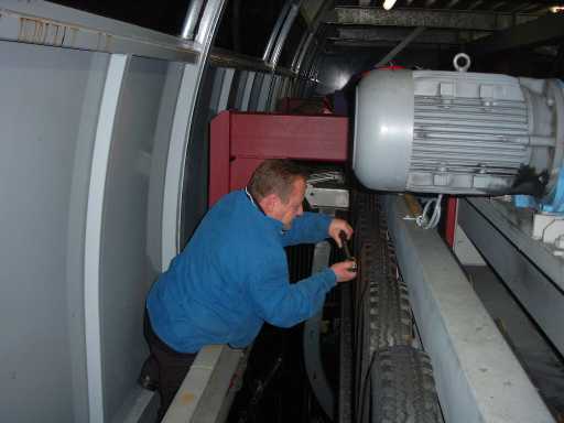 Reifenpanne beim Bergbahnantrieb, 2 Reifen sind defekt! Die Bahn steht, doch glücklicherweise ist Franz noch oben angekommen. Doch das Bergbahnpersonal arbeitete in Rekordzeit, wie beim Boxenstop bei der Formel 1.
